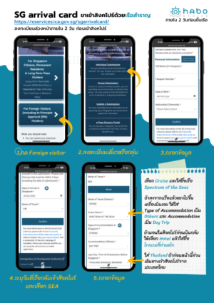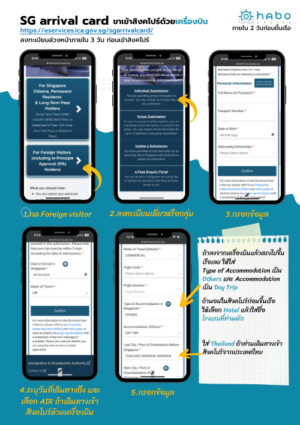 ทุกท่านที่เดินทางเข้าประเทศสิงคโปร์จะต้องลงทะเบียนก่อนเข้าประเทศผ่านลิ้งค์นี้ https://eservices.ica.gov.sg/sgarrivalcard/