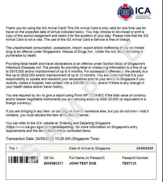 ยกตัวอย่าง หากเที่ยวบินของท่านถึงสิงคโปร์ในวันที่ 3 มกราคม ท่านสามารถเข้าเวบไซต์ข้างต้นเพื่อลงทะเบียนได้ในวันที่ 1, 2 หรือ 3 มกราคมเท่านั้น